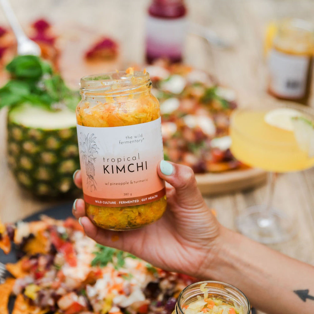 Handcrafted in small batches using natural wild fermentation, Tropical Kimchi is a story of food rescue for the health of our people and the future of our planet. The Wild Fermentary is proud to be collaborating with a major food processing company to rescue over 300kg of ripe pineapple every year for Tropical Kimchi. Tropical Kimchi ferments pineapple that is too ripe to last the required week on a supermarket shelf, making full use of perfect pineapple that would otherwise be lost to our food system.